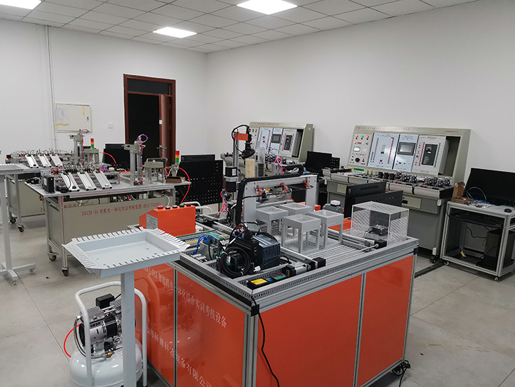 为了适应国家对高端智能制造设备所需要的高技能人才的培养,经多方调研及深度校企合作研发出系列工业机器人应用与维护专业实训考核系统设备。该系统符合"四个定位":即职业技能竞赛的定位;技能培训与鉴定的定位;做一体化教学改革的定位;符合高技能人才培训基地的定位。并符合国家对"关于进一步深化中等职业教育教学改革的若干意见"的文件精神,紧紧围绕以国家职业标准为依据,以综合职业能力培养为目标,以典型工作任务为载体,以学生为中心,根据典型工作任务和工作过程,设计新的课程体系和内容,按照工作过程的顺序和学生自主学习的要求进行教学设计和安排教学活动,实现理论教学与实践教学融通合一,能力培养与工作岗位对接合一,使实习与顶岗工作学做合一,最终培养学生的技术能力、方法能力和社会能力。