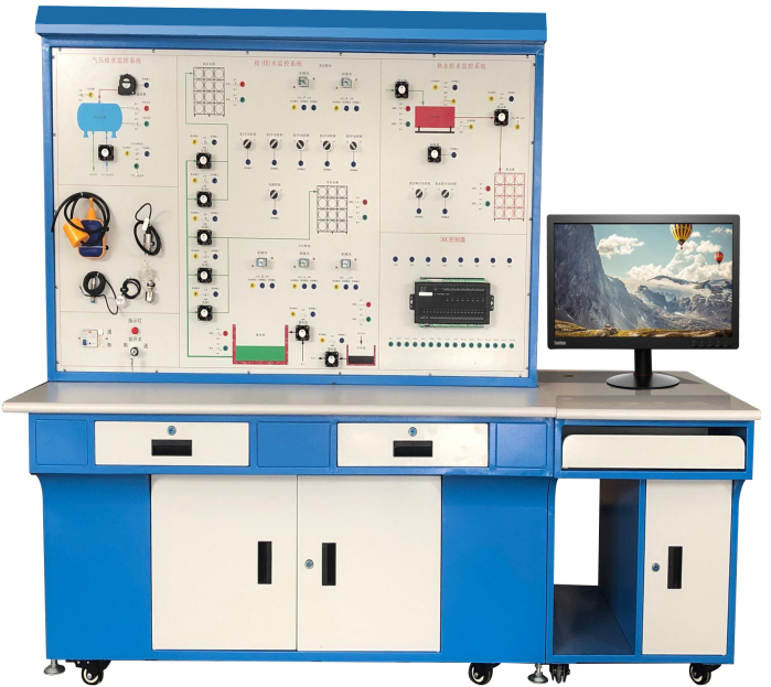 控制器的操作与编程、给水控制、排水控制、气压给水控制、热水供水控制、水位传感器的安装与连接,系统软件的组态、配置与控制,线路的设计与连接、故障的设置、判断及排除等实验和实训,并可与楼宇自控系列中的其它设备联网进行各种综合实训。