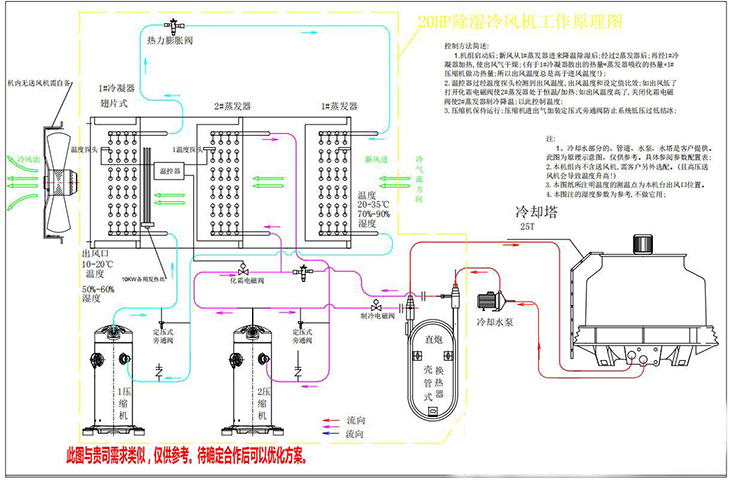 9、适用范围广:由于管道式调温除湿机具有多种运行模式,能够实现较大范围的制冷/制热/除湿的调节范围,室外换热器可以采用风冷或者水冷等形式,能够在不同地区使用,以满足全年运行冷/热/湿负荷的要求,以实现对空气温湿度的控制。