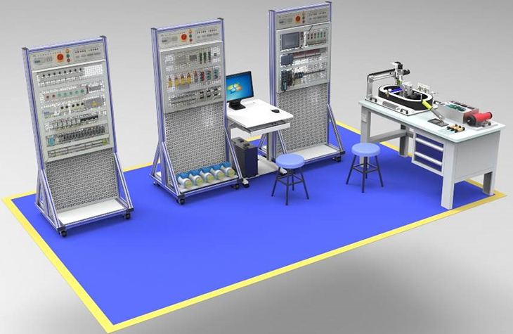 电工综合实训考核设备由PLC电气控制应用平台、电力拖动安装平台、立式塑胶机控制电路故障诊断实训平台、电脑桌、装配桌、实训仪表工具等组成。