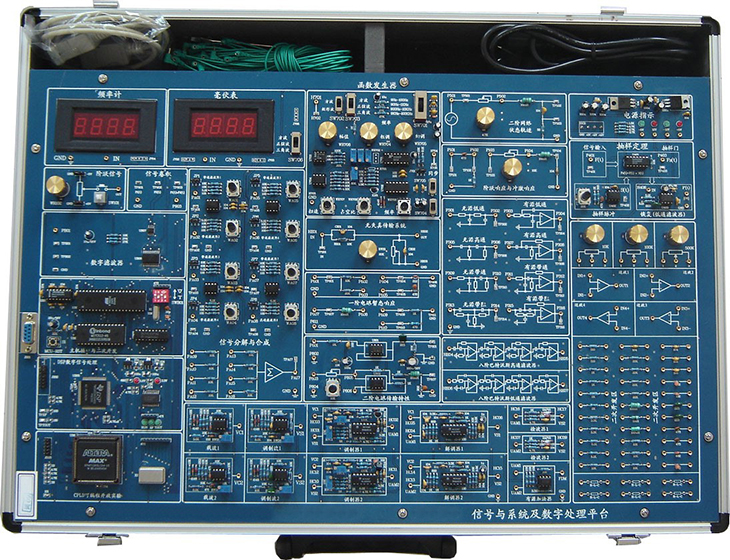 信号与系统及数字信号处理平台,是本公司开发人员采用先进的技术手段专门为《信号与系统》("九五"国家级重点教材、清华大学郑君理等编制)课程而设计的,该实验仪提供了信号的频域、时域分析的实验手段,增加了数字信号处理功能。利用该实验箱可进行阶跃响应与冲激响应的时域分析;连续时间系统的模拟;抽样定理与信号恢复的分析与研究;一阶、二阶电路的暂态响应;二阶网络状态轨迹显示、借助于DSP技术实现信号频谱的分析与研究、信号的分解与合成的分析与实验;各种模拟、数字滤波器的设计与实现等内容的学习与实验。