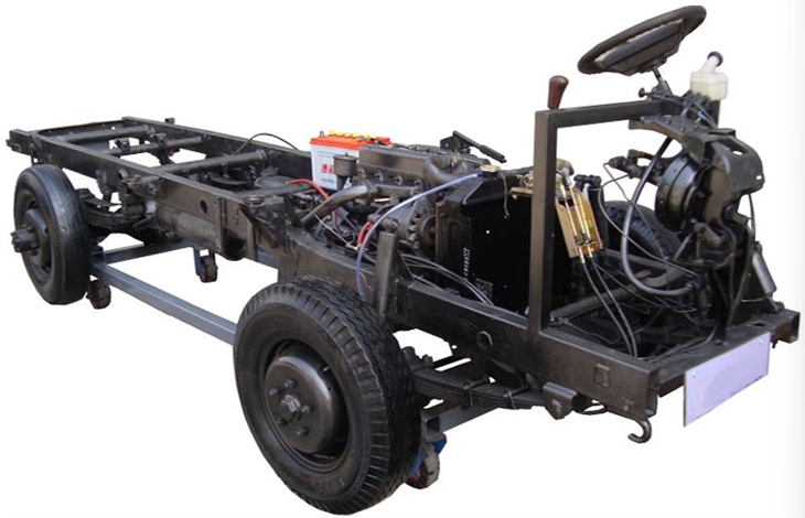 农机底盘实训台采用 (翻新)五十铃轻卡汽车底盘各系统(由原汽车拆卸车身保留的原车完整底盘系统)为基础,充分展示汽车底盘各系统的组成结构。包括汽车前后悬挂系、转向系、传动系、手动变速器及挂档机构、制动系等系统、安装脚轮的可移动式台架等组成。适用于学校对底盘各系统的理论和维修实训的教学需要。