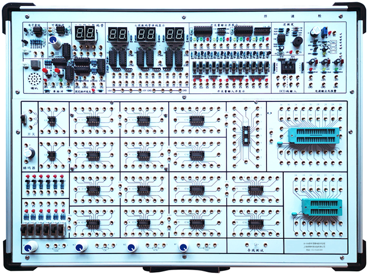数字逻辑电路实验室主要承担院校本科生数字逻辑电路课程的实验教学任务。实验课程首先使学生掌握基本测试仪器仪表的原理与操作,并掌握单个器件的功能与应用,加深对模拟电子技术基本原理的理解。其次,掌握数字电路硬件芯片安装,电路波形的测试,电路故障分析与处理技能,使学生在掌握基本的数字电路知识的同时掌握数字逻辑系统的分析与综合的基本方法,最终能够设计一些较为复杂的数字逻辑系统。另外要求学生熟悉并掌握用电子工作平台对电子线路进行各种仿真实验。数字逻辑电路实验箱由铝木合金箱体、开关电源、常用信号源、实验电路区组成。其中实验电路区采用全开放模式,可根据需求灵活配置实验电路,以满足不同层次学生的教学实验要求。