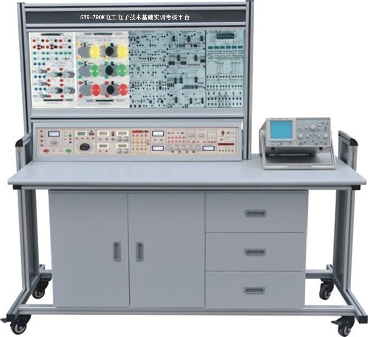 电工电子实训考核装置是我公司根据教育部"振兴21世纪职业教育课程改革和教材建设规划"的要求,按照职业教育的教学和实训要求而研发的产品,实训内容涵盖"电路分析""电工基础""电工学""模拟电子技术""数字电子技术""电机控制""继电接触器控制"等课程实训项目,结构合理,实训元器件采用挂箱式,易增加或扩展实训项目。该装置适合高职、高专、中专、职校等新建或扩建实训室,为学校迅速开设实训课提供了理想的实训设备。