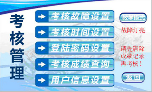 1)该系统由安卓蓝牙的故障设置系统和触摸屏的故障考核系统两部分组成。教师在讲课时,用带安卓系统的手机或平板电脑远程无线设置故障,远程启动、停止教学设备,方便教师教学讲课。学生考核是在触摸屏故障考核系统上完成的。教师和学生界面分开,教师输入密码进入教师界面出题并设置考试时间启用后,学生才能开始考核。教师界面故障类型为断路故障、虚接故障、短路故障三种,教师可任意出题,设置故障后,屏幕上按钮会由绿色变为红色,同时继电器板动作,设备产生故障。学生在答题界面会显示学号、剩余时间、故障总数,学生在设备上检测查出故障后,选择相应的故障按钮,屏幕上按钮会由红色变绿色,故障选择完毕后,点击提交试卷后,就会看到本次考试成绩。