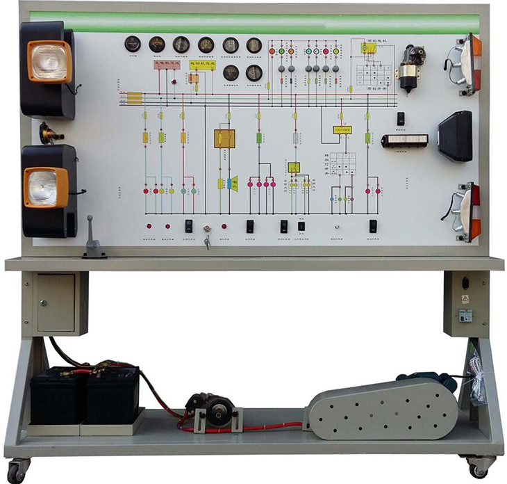 2.设备面板采用耐创击、耐污染、防火、防潮的高级铝塑板,表面经特殊工艺喷涂底漆处理;面板打印有永不褪色的彩色电路图;学员可直观对照电路图和实物,认识和分析整车电器各系统的工作原理。