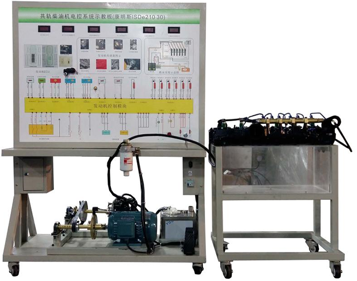1.真实可运行的共轨柴油发动机燃油喷射系统,充分展示燃油喷射系统的组成结构和工作过程。电机驱动曲轴位置信号轮,可演示电子燃油喷射工作情况。