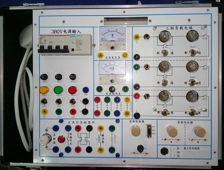 (5)三相灯组上装有有机玻璃保护罩,既防止灯管损坏,又保护实验导线不被烫坏,还保护了人生安全。