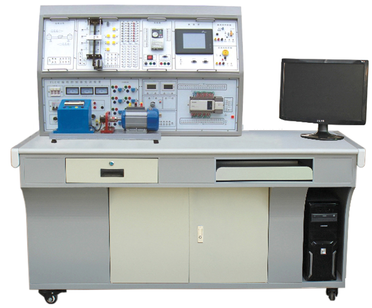 电气自动化学习台由实验台、实验屏、PLC主机模块、模拟实验模块、变频器主机模块、触摸屏模块、附件(手册、实验导线等)组成。