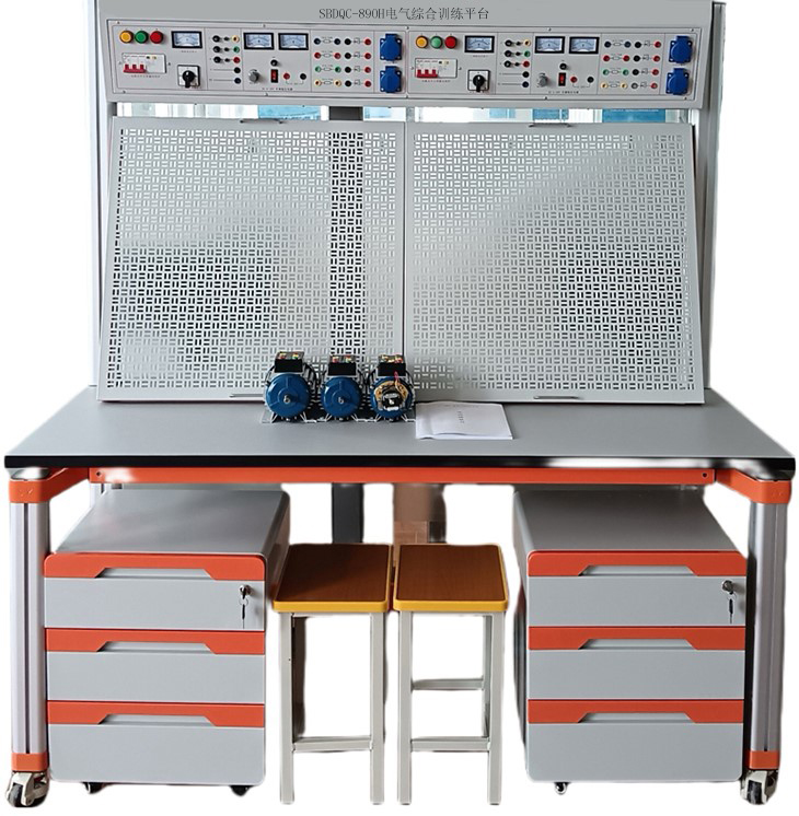 电气综合训练平台由钢板作制作的多功能安装板(网孔板)实训台和电源装置等组成。实训时选择的各种元件、器件和部件,可方便地安装在网孔板上,方便灵活。