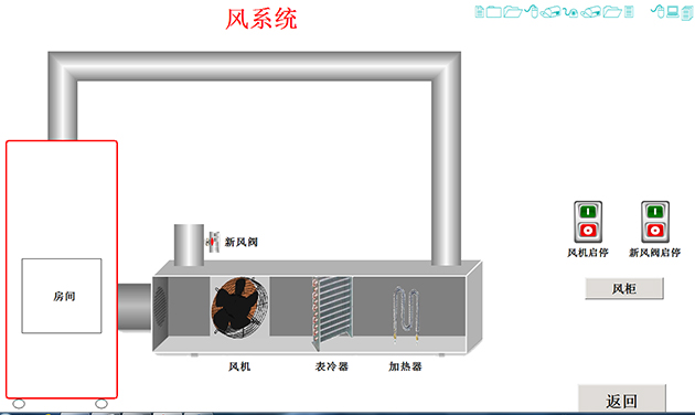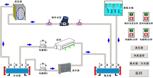 (3),系统故障运行演示:在配置有实物中央空调实训考核装置时,在软件演示故障时系统动画与实物实时故障同步,让学生更好地撑握空调原理、操作方法,如压缩机系统、制冷系统、制热系统、风系统、集中送风系统、半集中送风系统的原理过程。