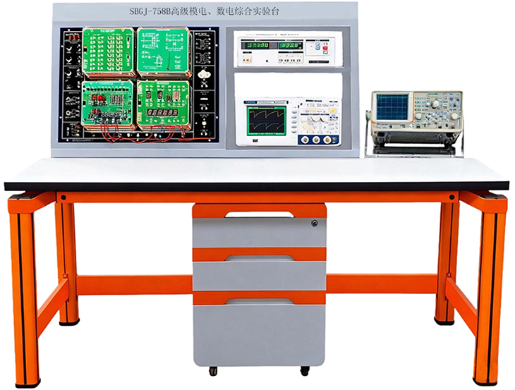 高级模电数电综合实验装置,模电数电实训平台,高级模电、数电综合实验台,模拟/数字电路调试系统以知识的综合应用和实践动手能力培养为出发点,通过所提供的实训平台,能够达到学生掌握特定技能的目的,体现创新设计的发展趋势。该系统实训的内容涵盖模拟电子技术、数字电子技术,电子产品电路的搭建、制作和调试,以及电子线路故障的查找、排除等内容。