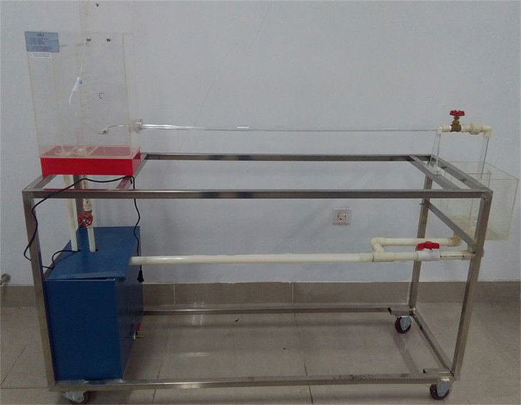 5、配置:移动式不锈钢实验台、有机玻璃整流稳压水箱、雷诺管、颜料盒、颜料针管、计量箱、PVC板水箱、防腐潜水泵、循环管阀、控制箱。