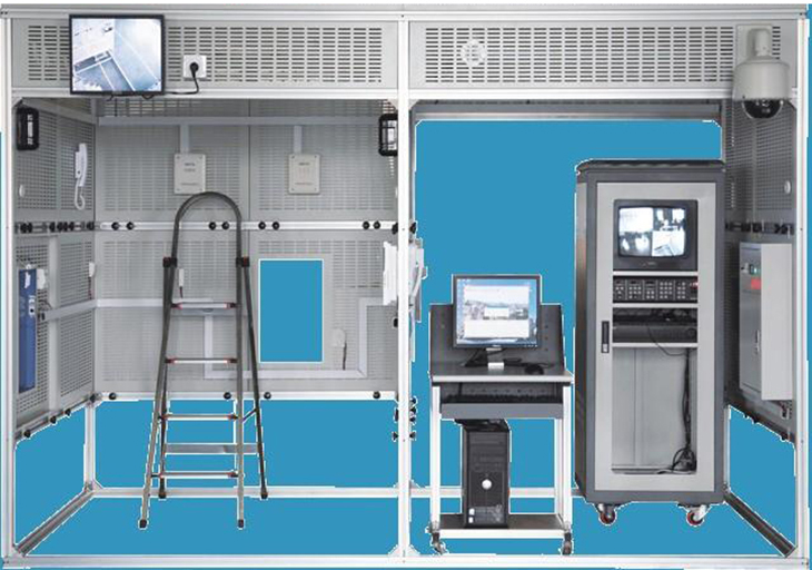 建筑模型由标准规格的铝合金工业型材和网孔式安装板组成,设有总电源箱。建筑模型分为智能大楼(小区)和管理中心两部分,安保区域设有单元门和单户窗,实现智能小区对讲门禁系统的设备安装、智能大楼室内安防系统的设备安装等工程训练,实现单元和单户可视对讲功能。