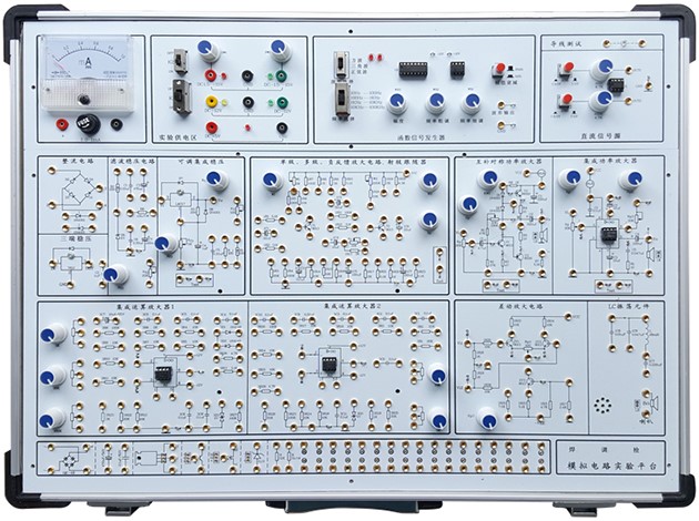 含机箱、工作电源、常用模拟信号源、实验电路区和分立元件