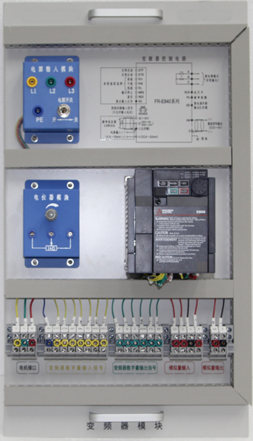 4)配置多功能端子排,将变频器信号集成转接至多功能端子排上,设有快速插接端口,便于学生实训接线,也可使用压线端子接口,用于训练实操布线工艺。