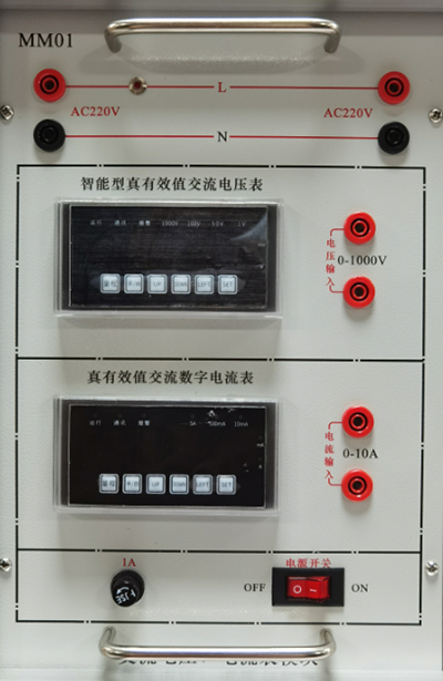 提供0~250V连续可调交流电源一路,数显电压变显示输出电压值,输出具有短路、过流保护等功能。提供交流电压表一只,测量范围0~500V,三位半显示,能够测量输入交流电压。