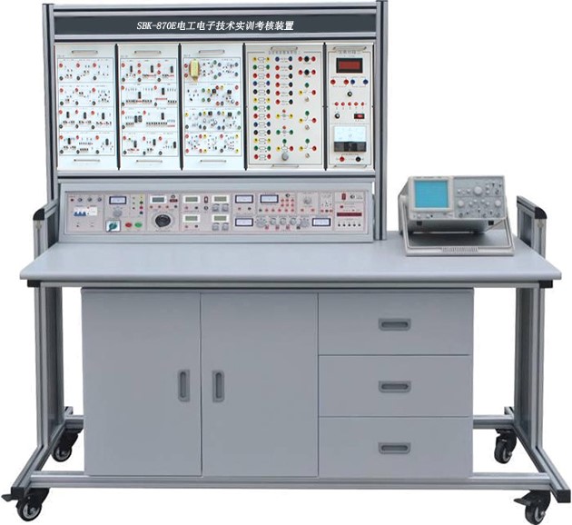 电工电子实训装置、电工电子技术实训考核装置是上海硕博公司根据教育部"振兴21世纪职业教育课程改革和教材建设规划"的要求,按照职业教育的教学和实训要求而研发的产品,实训内容涵盖"电路分析""电工基础""电工学""模拟电子技术""数字电子技术""电机控制""继电接触器控制"等课程实训项目,结构合理,实训元器件采用挂箱式,易增加或扩展实训项目。该装置适合高职、高专、中专、职校等新建或扩建实训室,为学校迅速开设实训课提供了理想的实训设备。