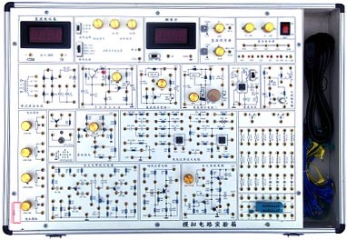 模拟电路实验箱由铝木合金箱体、高性能线性电源、和实验电路板组成。其中实验电路采用固定功能模块方式,电路原理和元器件符号清晰,实验用元器件可以焊装在线路板的反面,安全可靠,不易损坏,也可以装在线路板的正面,元件直观可见,感性认识强,正面还有实验电路原理图,使学生在实验时对原理一目了然。