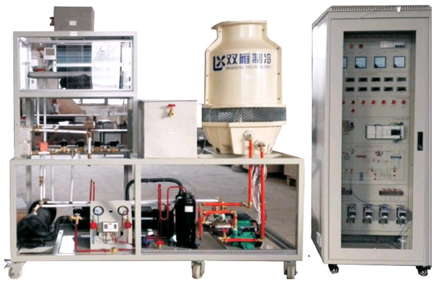 蓄冷空调制冷技术实训装置是利用夜间低谷负荷电力制冰储存在蓄冰装置中,白天融冰将所储存冷量释放出来,减少电网高峰时段空调用电负荷及空调系统装机容量,它代表着当今世界中央空调的发展方向。该实训装置是根据《蓄冷空调系统原理、工程设计及应用》、《蓄能空调技术及其发展》等课程的实践教学而开发设计的新型实训设备。整个装置采用直接蒸发制冰系统,系统主要由制冷机组、蓄冰装置、空调末端装置、空调循环水泵、乙二醇泵、载冷剂(乙烯乙二醇水溶液)等组成。适合各院校空调工程专业、建筑环境与设备工程等专业相关课程的实训教学。
