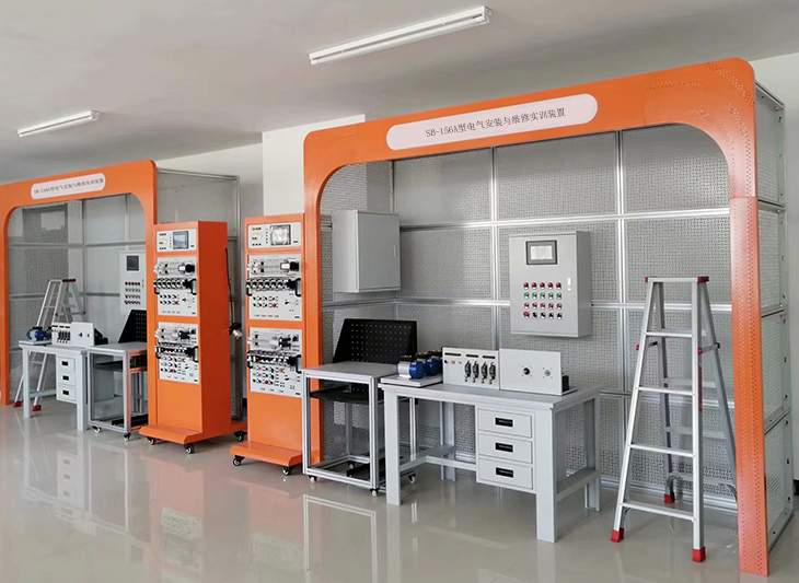 电气安装与维修实训考核装置、电气安装与维修实训室,是根据工厂电气安装和室内电气安装等维修电工和电气安装工实训鉴定要求的一种实训平台。适合于职业院校维修电工、电气安装工、水电工等有电气实训要求的相关专业的作为公共实训平台使用。