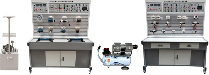 利用此套实训设备既可分别独立地进行气动控制、液压控制相应的基本回路及其应用实验,也可综合地进行相互配合的实验:如实现气-电控制,气-液控制,电-液控制,以及气-电-液综合控制等。