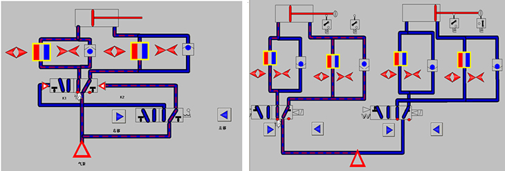 液压实验元件均为透明有机材料制成,透明直观。便于了解掌握几十种常用液压元件的结构、性能及用途。掌握几十种基本实验回路的工作过程及原理。实验时,组装实验回路快捷、方便。气动实训与液压实训电气主控单元配备2套PLC控制与2套继电器控制,简单实用。