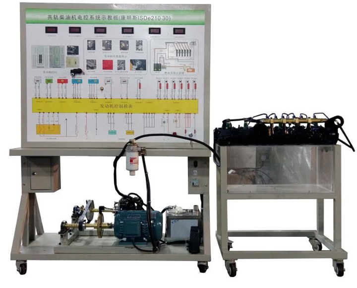 1.真实可运行的共轨柴油发动机燃油喷射系统,充分展示燃油喷射系统的组成结构和工作过程。电机驱动曲轴位置信号轮,可演示电子燃油喷射工作情况。