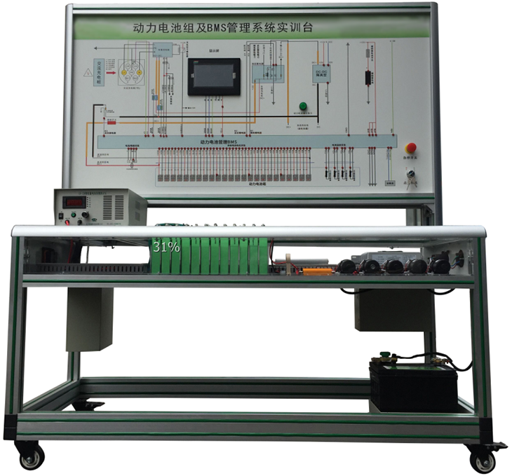 选用新能源车辆 磷酸铁锂 动力电池包,单体电池(3.2V20AH,共24串),带CAN总线的一体机BMS电池管理系统,有被动均衡功能;真实地呈现了磷酸铁锂动力电池包核心零部件之间的连接控制关系、安装位置和运行参数,以及高压系统安全注意事项,并培养学员对磷酸铁锂动力电池包(BMS)故障分析和处理能力。适用于了解与验证电动汽车的动力电池参数进行实时监控、故障诊断、SOC估算、短路保护、绝缘检测、充放电控制、均衡等功能,并通过CAN总线的方式与带CAN通讯的车载充电机进行信息交互,保障电动汽车高效、可靠、安全运行的BMS教学实训实验。