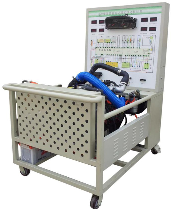 2.实训台面板采用4mm厚耐腐蚀、耐创击、耐污染、防火、防潮的高级铝塑板,表面经特殊工艺喷涂底漆处理;面板打印有永不褪色的彩色电路图;学员可直观对照电路图和电控高压共轨柴油发动机实物,认识和分析控制系统的工作原理。