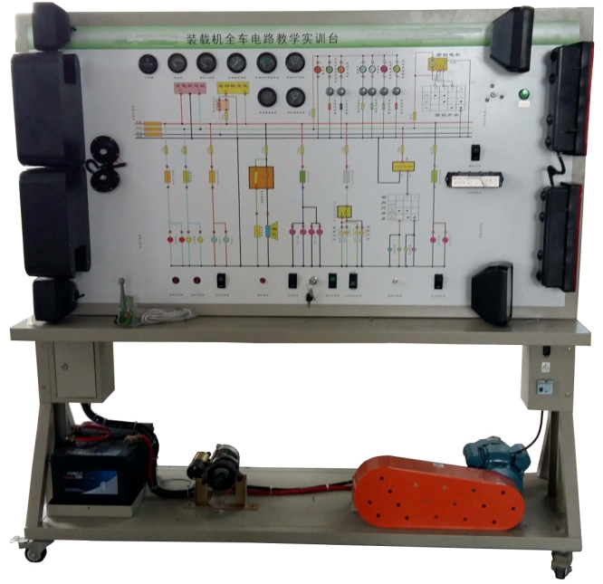 装载机整车电气实训设备采用 全新ZC50装载机 整车电器实物为基础,充分展示仪表系统、灯光系统、雨刮系统、喇叭系统、发动机电器系统、起动系统和充电系统等电器各系统的组成结构和工作过程。