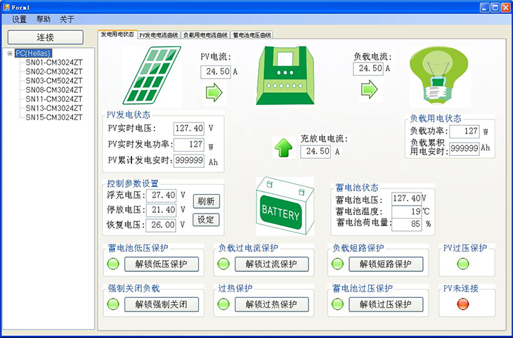 使用单片机和专用软件,实现智能控制,12/24电压自动识别系统。
