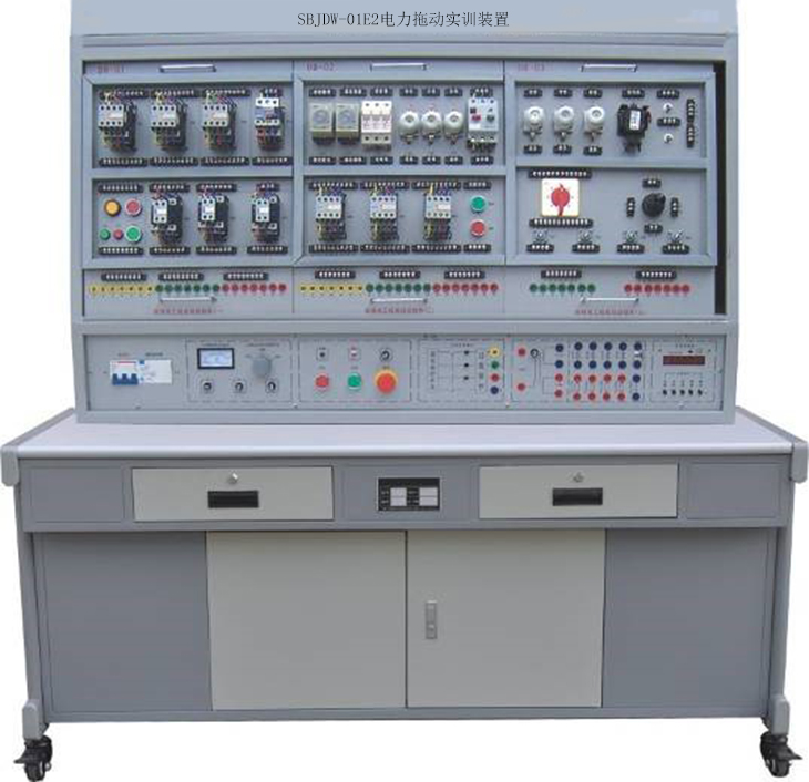 "电力拖动实训装置"是根据劳动和社会保障部颁发的维修电工初、中级技能考核内容所列出的电气控制线路而研发的实训装置,通过本实训装置的实训操作,能快速掌握该课程的实际应用技术与操作技能,该实训装置不仅可供学生进行技能实训,也是大中专院校、技校、职校及劳动职业技能鉴定部门专业实训理想设备。