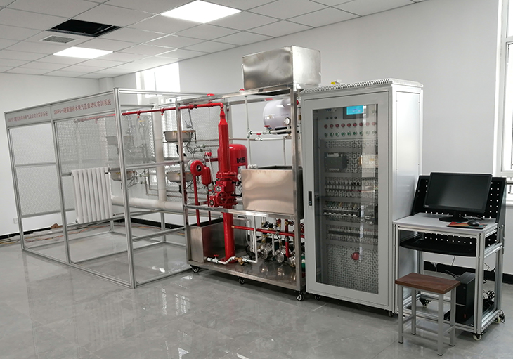 2、消防给水系统:主要有给水箱、喷淋泵、稳压罐、湿式报警阀、压力开关、水流指示器、消防给水管道、闭式喷淋头等组成。管路采用镀锌管进行设计,可进行镀锌管的切割、套丝、安装和通水试验操作,通过控制系统可实现喷淋灭火功能。