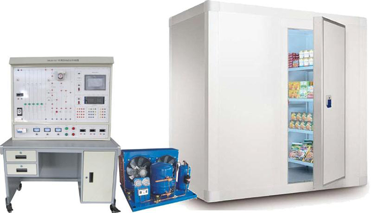 实训装置主要由控制屏、实训桌、风冷制冷机组及拼装式冷库等组成